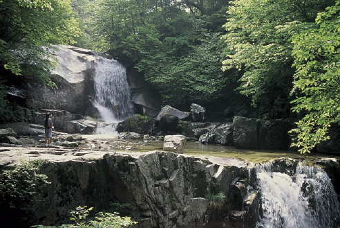 전라북도 무주군에 위치한 덕유산 자연휴양림은 자연을 즐기기에 최적화된 장소로, 계곡, 울창한 잣나무와 낙엽송 조림목, 그리고 안개가 자욱한 산을 배경으로 숲속의 집, 야영장, 산책로, 등