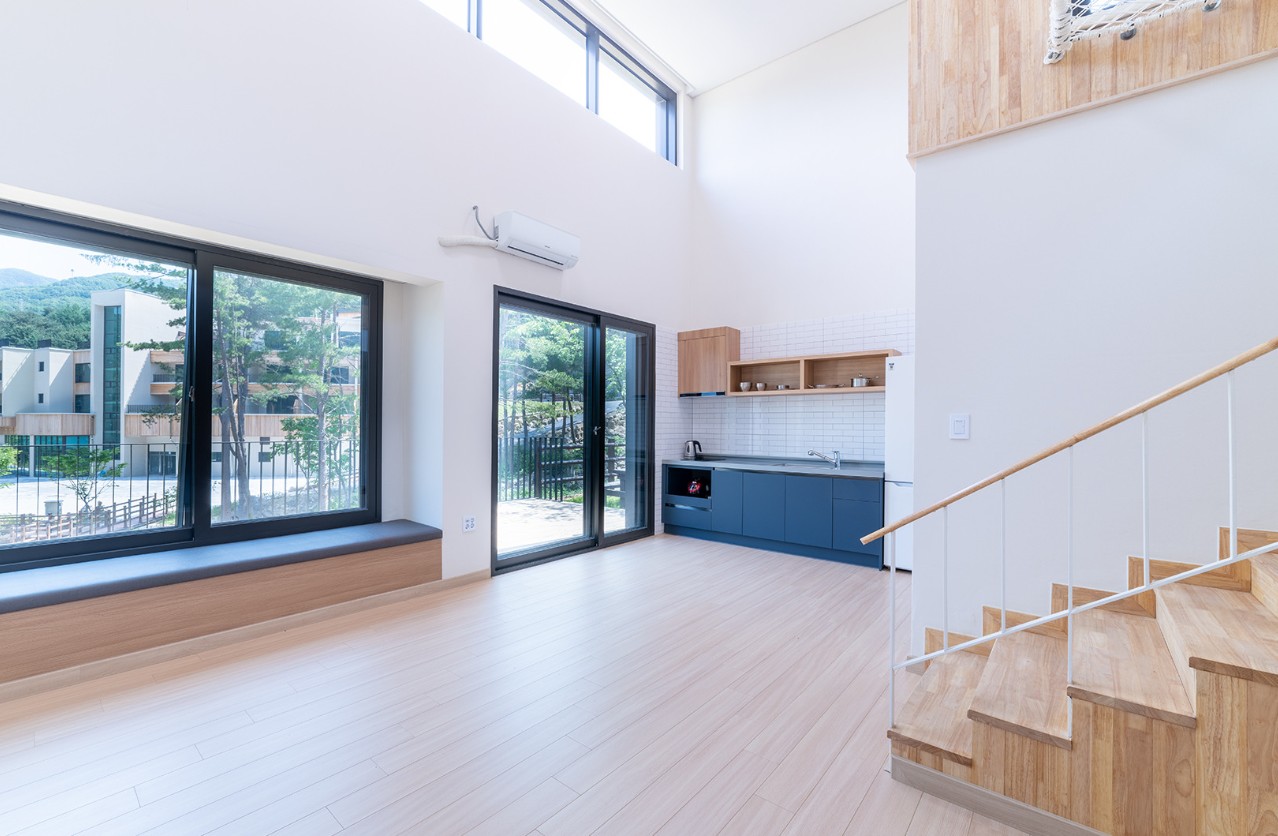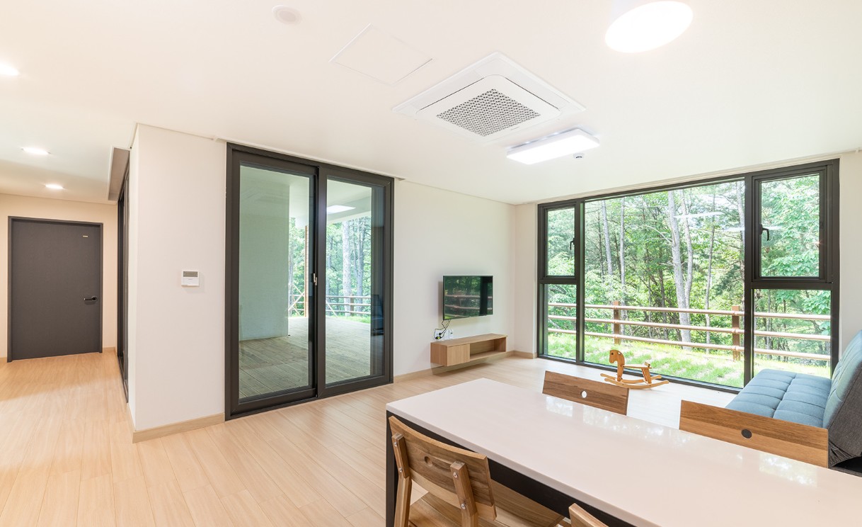 숲속의 집은 독채 펜션으로, 소나무와 함께하는 프라이빗한 휴식을 취할 수 있습니다. 단층형(6인실)과 복층형(8인실)으로 구성되어 있으며, 모든 방에서 숲과 바람소리를 느낄 수 있습니다. 펜션 내부는 나무로 꾸며져 있어서 숲에서 휴식을 취하면서도 편안한 분위기를 느낄 수 있습니다.