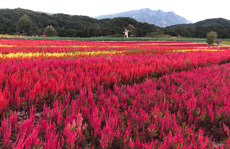 가을 시즌 꽃 종류: 맨드라미, 백일홍, 천일홍, 코키아, 코스모스, 메밀 등